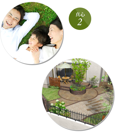 この精神のもと当社では、お客様と共に考えて最高の作品としてのエクステリア、 庭づくりを目指し、ご家庭の皆様が笑顔になれる物づくりを心がけております。